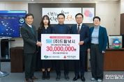 한민일보 서울포커스 황준형 기자 | (재)천안시복지재단은 28일 ㈜드림낚시가 저소득 아동복지 증진을 위해 후원금 3,000만 원을 기탁했다고 밝혔다. 드림낚시는 지난해 사랑의 열매 나눔 명문 기업에 가입하면서 5년 간 1억 원을 약정했으며, 지난해 4,000만 원 기부에 이어 올해도 저소득 아동을 위한 따뜻한 나눔을 실천했다. 정철인 드림낚시 대표는 “아동들이 자립할 수 있도록 조금이나마 도움이 되길 바란다”며 “앞으로도 우리의 미래인 아동을 돕는 기업이 될 것”이라고 말했다. 이운형 천안시복지재단 이사장은 “매년 아동의 미래를 위해 후원해 주시는 드림낚시에 감사드린다”며 “후원금이 투명하게 사용될 수 있도록 최선을 다할 것”이라고 말했다.