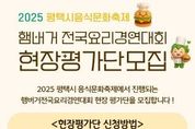 한민일보 서울포커스 황준형 기자 | 평택시는 오는 25일 농업생태원에서 ‘2025 평택시 음식문화축제’를 통해 ▲전국 요리경연대회 ▲평택 지역 맛집 및 세계음식 시식·체험관 ▲노 오븐 베이킹 체험관 ▲탄소중립 실천·홍보관 등 다채로운 부스가 운영돼 시민들에게 풍성한 경험을 선사할 예정이다. 전국 요리경연대회는 ‘평택의 맛, 나만의 아이디어로 버거를 완성하다’를 주제로 총 18팀(일반부 10, 가족부 8)이 본선에 진출해 열띤 경연을 펼친다. 지난해와 달리 참가 부문이 일반부와 가족부로 확대됐으며, 시상 규모도 10팀 740만 원으로 늘어나 큰 기대를 모으고 있다. 경연대회의 생생한 현장을 함께할 시민 현장평가단도 사전 모집한다. 10월 24일(금) 오전 9시부터 오후 5시까지 일반부와 가족부 각 20명씩 무작위로 선착순 접수받으며, 편식 없는 고등학생 이상이라면 누구나 신청할 수 있고, 선정된 지원자는 실제 경연 현장에서 요리를 맛보고 평가하게 된다. 또한, 오전 10시에는 빵과당신 인재홍(대한민국 제과명장)이 진행하는 베이킹 체험이 마련돼 있으며, 참가 신청은 24일(금) 오전 10시부터 평택예총 공식 블로그