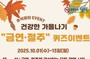 한민일보 서울포커스 황준형 기자 | 평택시 송탄보건소에서 오는 10월 1일부터 13일까지 시민 누구나 참여할 수 있는 ‘건강한 가을나기 금연·절주 퀴즈 이벤트’를 진행한다. 이번 퀴즈 이벤트는 정보무늬(QR코드)를 활용 간편하게 참여할 수 있으며 금연·절주의 필요성과 건강관리 정보를 흥미로운 퀴즈 형식으로 접할 수 있도록 기획됐다. 퀴즈를 완료한 참여자 중 정답자 100명을 추첨해 금연 홍보물(보조배터리)을 증정하며 당첨자는 10월 15일 개별 문자로 안내된다. 상품은 10월 16일부터 22일까지 송탄보건소 1층 헬스케어상담센터 내 금연클리닉에서 수령할 수 있다. 송탄보건소 관계자는 “모든 시민이 금연과 절주의 필요성을 이해하고 건강한 생활을 실천하는 계기가 되길 바란다”라고 전했다.