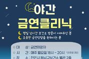 한민일보 서울포커스 황준형 기자 | 천안시 동남구보건소는 새해를 맞아 오는 11월까지 야간 금연클리닉을 운영한다고 8일 밝혔다. 야간 금연클리닉은 시간적 제약으로 금연클리닉 이용이 어려운 직장인 등을 위해 마련됐으며, 매주 월요일에는 오후 8시까지 이용이 가능하다. 금연클리닉에 방문하면 금연상담사와의 면담을 통해 금연 계획, 금단현상 대처 방법 상담, 금연행동 요법, 단계별 금연보조제(니코틴 패치), 6개월간의 대면·전화·문자 상담 등을 지원받을 수 있다. 박혜경 동남구보건소장은 “주민들이 편리하게 금연지원서비스를 이용할 수 있도록 금연 환경을 조성해 건강증진에 도움이 되길 바란다”고 말했다.