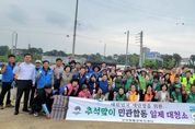 한민일보 서울포커스 황준형 기자 | 평택시 청북읍 행정복지센터는 지난 26일 민족 최대 명절 추석을 앞두고 청북공설공원묘지 일대에서 민관이 함께한 대청소 활동을 펼쳤다. 이날 이장협의회와 새마을지도자회, 새마을부녀회 등 3개 단체와 청북읍 행정복지센터 직원 등 50여 명이 참여해 묘지 주변 도로와 공용부지를 중심으로 잡초 제거, 쓰레기 수거 등 청소 취약 구간을 집중 정비하고, 무단으로 버려진 폐기물을 말끔히 수거하는 등 쾌적한 성묘 환경 조성에 힘썼다. 참여 단체 대표들은 “우리 마을 환경은 우리가 지킨다는 마음으로 앞으로도 환경 정화 활동에 적극 동참하겠다”라고 입을 모았다. 이철은 청북읍장은 “추석을 맞아 깨끗한 마을 만들기를 위해 자발적으로 동참하신 모든 분께 깊이 감사드리며, 앞으로도 정기적인 환경 정비 활동과 주민 참여 확대를 통해 쾌적하고 품격 있는 청북읍을 만들어 가겠다”라고 말했다.