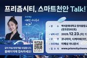 한민일보 서울포커스 황준형 기자 | 천안시는 오는 23일 백석문화대학교 창의융합교육센터에서 시민과 전문가가 함께하는 스마트도시 토크콘서트 ‘프리즘시티, 스마트천안 Talk! Talk!’를 개최한다고 18일 밝혔다. 이번 행사는 인공지능(AI) 전환 시대에 선제적으로 대응하고 있는 천안시 스마트도시의 미래 비전을 시민과 공유하고, 첨단 기술의 일상 적용 사례를 살펴보기 위해 열렸다. 아나운서 이혜성이 진행자 겸 패널로 참여해 시민과 함께 스마트도시의 가치와 미래 생활상을 주제로 대담을 나눌 예정이다. 천안시 스마트도시 실현을 위해 협업 중인 기업들은 실제 사례와 기술을 소개한다. 천안사랑카드 운영사 코나아이는 지역화페 기반의 스마트도시 ‘시민 서비스 앱’을, 카카오 계열사 디케이테크인은 카카오톡 기반의 ‘천안형 GPT’를 각각 설명할 계획이다. 천안시 도시가스 공급 기업 JB주식회사는 도시가스 순회점검 차량을 활용한 ‘도로위험감지 및 도시데이터 수집 서비스’ 에 대해 안내해 시민들이 일상 속 스마트도시를 쉽게 이해할 수 있도록 도울 예정이다. 참여신청은 프리즘시티 천안 공