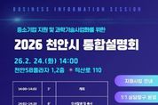 한민일보 서울포커스 황준형 기자 | 천안시는 오는 24일 천안과학산업진흥원과 함께 천안SB플라자에서 ‘중소기업 지원 및 과학기술사업화를 위한 2026 천안시 통합설명회’를 개최한다고 11일 밝혔다. 이번 설명회는 시와 관련된 기관·단체에서 추진하는 중소기업 지원사업에 대한 종합정보를 제공하고, 과학기술사업화 유관기관의 지원사업을 안내하기 위해 마련됐다. 설명회에는 중소기업 지원, 연구개발(R&D), 금융·보증, 기술사업화, 투자 분야의 공공기관 , 연구기관 등 22개 기관이 참여하며, 주요 정책 발표와 1:1 상담 부스 등을 통해 맞춤형 정보를 제공할 예정이다. 시 관계자는 “이번 설명회를 통해 중소기업들이 다양한 지원제도를 효율적으로 제공받을 수 있길 바란다”고 말했다.