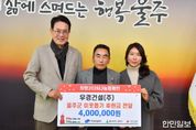한민일보 서울포커스 기자 | 우경건설㈜이 29일 울주군청 소회의실에서 이순걸 군수, 박상훈 대표 등 관계자들이 참석한 가운데 울주군에 성금 400만원을 전달했다. 박 대표는 2021년부터 매년 울주군에 성금을 전달하며, 올해로 5번째 기부를 이어오고 있다. 그동안 전달된 성금은 울주군 저소득 가구의 생계비. 의료비 및 주거비 지원에 사용됐다. 박상훈 대표는 “울산에서 사업체를 운영하면서 좋은 날도 힘든 날도 있었지만 지금까지 함께 한 직원들과 도움을 주신 분들이 있었기에 건실한 사업체로 우뚝 설 수 있었다”며 “도움과 나눔의 가치를 더해 직원들의 자부심을 높이고 지역사회에 희망의 온기를 전하겠다”고 말했다. 이순걸 군수는 “지역 발전을 위해 늘 애쓰시는 향토기업이 나눔활동에도 앞장서주셔서 깊이 감사드린다”며 “소중한 온정이 필요한 이웃에게 잘 전달될 수 있도록 세심히 살피겠다”고 밝혔다.