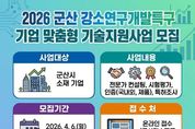 한민일보 서울포커스 김용택 기자 | 군산시는 관내 기업의 기술 경쟁력 강화를 위해 ‘2026년 군산 강소연구개발특구 기업 성장단계별 기술지원사업’을 본격 추진한다고 밝혔다. 이번 사업은 중소기업이 창업 초기 단계부터 성장 단계별로 겪는 다양한 애로사항을 해결하고, 각 단계에서 가장 필요한 맞춤형 기술지원을 제공하기 위해 마련됐다. 지원 분야는 ▲중 단기 컨설팅 ▲시험평가 ▲국내외 인증 ▲제품인증 ▲특허조 사 등으로 구성되며, 기업의 성장단계와 필요에 따라 맞춤형 지원을 신청할 수 있다. 특히, 전문가 컨설팅의 경우 기술개발 및 판로개척 자문, 경영 개선을 돕는 단기 과정부터 국가과제 사업계획 수립, 사업기획 지원 등 심화 컨설팅이 필요한 중기과정까지 기업별 상황에 따라 세분화하여 운영된다. 또한, 제품의 성능과 안전성을 검증하는 시험평가를 비롯해 국내·외 일반 인증 및 대규모 비용이 소요되는 제품인증을 지원하여 기업의 시장 진출을 적극적으로 뒷받침할 예정이다. 아울러, 특허 출원을 위한 선행 기술조사·분석을 지원하여 기업의 지식재산권 확보도 지원할 계획이다. 지원 대상은 군산시 소재 기업이며, 군산 강소특구 소재 기업, 친환경 전기차 배터리 융합산업 분야 기
