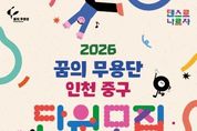 한민일보 서울포커스 백진욱 기자 | (재)인천중구문화재단(이사장 김정헌)은 2026 꿈의 무용단 ‘인천 중구’의 신규 단원을 모집한다고 4일 밝혔다. ‘꿈의 무용단’은 문화체육관광부가 주최하고 한국문화예술교육진흥원이 주관하는 꿈의 예술단 사업으로, 인천중구문화재단은 4년 차 거점기관으로서 현대무용 기반의 무용예술교육을 안정적으로 운영해 오고 있다. 모집 대상은 인천 지역 거주 또는 소재 학교 재학 중인 아동·청소년(8세~18세)이며, 모집 기간은 2월 26일부터 3월 18일까지다. 중구·동구 거주자(또는 관내 학교 재학생)는 선발 시 우대한다. 이번 2026 꿈의 무용단 ‘인천 중구’는 현대무용 기반 문화예술교육을 통해 아동·청소년의 표현력과 공동체 역량을 키우는 성장형 프로그램이다. 무엇보다 과정 중심의 교육을 통해 참여 경험의 가치를 높이고자 한다. 재단은 온라인 접수 후 오디션을 통해 단원을 최종 선발할 방침이다. 선발된 단원은 4월부터 11월까지 정기 교육과정과 정기 공연에 참여하게 된다. 교육은 기초 신체 훈련과 움직임 탐색, 즉흥 활동, 레퍼토리 창작 등 단계별 프로그램으로