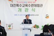 한민일보 서울포커스 유한희 기자 | 대전특수교육원은 11월 5일, 유성구 성북동에서 설동호 교육감, 대전광역시의회 교육위원, 교육계 인사 등 70여 명이 참석한 가운데 ‘대전특수교육수련체험관 개관식’을 실시했다고 밝혔다. 대전특수교육수련체험관(이하 수련체험관)은 대전특수교육원 부설기관으로 장애학생의 자립능력과 미래 역량을 키우기 위해 (구)진잠초 방성분교를 수선하여 개관했다. 시설은 교육실, 행동중재지원실, 보조공학실, 일상생활실 등 6실로 구성됐고, 야외에 야영장, 오솔길, 아이글라이더(VR체험) 등 수련활동, 야영 체험을 위한 공간을 마련했다. 개관식은 홍보영상 시청에 이어 내빈 소개, 환영사, 교육감 축사, 교육위원회 위원장 격려사, 경과 보고에 이어 기념식수, 테이프 커팅 후 시설을 함께 둘러보는 탐방의 순서로 진행됐다, 수련체험관 개관을 통해 대전특수교육은‘교육공동체와의 행복한 동행’을 위한 기틀을 마련하게 됐다. 이를 통해 장애학생과 일반학생이 함께 할 수 있는 장애공감 프로그램, 장애학생 수련·체험 프로그램 등을 운영하고, 한국산림복지진흥원, 국립대전숲체원 등 지역사회 관계기관과의 협력을 통해 장
