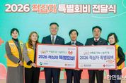 한민일보 서울포커스 임경복 기자 | 칠곡군과 칠곡군의회는 지난달 26일 군수실에서 대한적십자사 경북지사에 ‘2026년도 적십자 특별회비'를 전달하며 나눔 문화 확산에 동참했다. 이번 전달식에는 김재욱 칠곡군수와 이상승 칠곡군의회 의장을 비롯해 김재왕 대한적십자사 경북지사장, 조진호 경북지사 사회협력팀장, 최미선 대한적십자사봉사회 칠곡군협의회장 등이 참석했다. 이날 김재욱 군수와 이상승 의장은 특별회비를 각각 전달했다. 김재욱 칠곡군수는 "재난 구호와 소외계층 지원 등 어려운 이웃을 위해 항상 헌신하고 있는 대한적십자사의 노고에 깊은 감사를 드린다"며, "적십자사의 따뜻한 손길은 군민 모두에게 희망과 사랑의 징표가 되고 있다"고 전했다. 한편, 2026년도 적십자 회비 집중 모금은 지난해 12월 1일부터 올해 3월 31일까지 진행된다. 적십자 회비는 각 가구 세대주뿐만 아니라 법인, 개인사업자, 공공기관 등의 명의로도 자유롭게 참여할 수 있으며, 모금된 회비는 취약계층 지원 등 다양한 인도주의 사업에 소중하게 쓰일 예정이다.