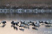 한민일보 서울포커스 박용남 기자 | 고창군이 해리천 일원에서 환경부 멸종위기종 1급이자 천연기념물인 황새 무리가 역대 최대 규모인 80여 마리나 월동 중인 것으로 확인됐다고 9일 밝혔다. 앞서 고창군에선 지난 2021년 60여 마리, 2023년 67여 마리가 발견됐었다. 최근 몇 년간 지속적인 관찰을 통해 고창 해리천이 황새들의 핵심 월동지임을 다시금 입증했다. 황새는 예로부터 길조(吉兆)로 여겨져 왔으며, 고창 해리천이 이처럼 대규모 황새 무리의 '겨울집'이 된 데에는 특별한 이유가 있다. 해리천은 해수가 유통되는 자연 하천으로, 맹추위 속에서도 수면이 얼지 않는다는 큰 장점을 지닌다. 이는 새만금, 서산시, 태안군 등 국내 주요 황새 월동지들이 최근 한파로 결빙되면서 황새들이 얼지 않은 해리천으로 집중적으로 모여든 것으로 분석된다. 또한, 해리천 주변에 넓게 분포하는 갯벌은 미꾸리, 갯지렁이 등 황새가 좋아하는 풍부한 먹이원을 끊임없이 제공하며 안정적인 월동을 돕고 있다. 이에더해 고창군은 황새의 안정적인 월동을 위해 먹이주기 및 환경정비 등 서식지 관리에