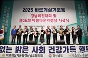 한민일보 서울포커스 박근원 기자 | 경상남도가 20일 창원컨벤션센터에서 열린 ‘2025 바르게살기운동 경남 회원대회 및 제26회 아름다운 가정상 시상식’에서 지역사회 봉사에 앞장서 온 회원들을 격려했다. 이번 행사에는 박완수 도지사를 비롯해 박인 경남도의회 부의장, 허명구 경남경찰청 공공안전부장, 김정기 바르게살기운동 경남도협의회장 등 주요 인사와 도내 회원 1,500여 명이 참석했다. 올해 회원대회는 한 해 동안의 활동성과를 공유하고 회원들의 노고를 치하하기 위해 마련됐다. 행동강령 낭독과 2025년 성과보고를 시작으로 유공회원 표창과 아름다운 가정상 시상식이 진행됐다. 박완수 도지사는 이날 축사에서 “전국대회에서도 경남이 두 번째로 많은 인원이 참석해 경남의 역량을 보여줬다”며 “경남이 힘을 내야 대한민국이 힘을 낼 수 있다”고 강조했다. 이어 “올해 산불·수해 등 재난이 있었지만 그때마다 바르게살기운동 회원들이 먼저 현장에 나가 이웃을 돌보며 도민의 일상 회복에 힘을 보탰다”며 “여러분의 땀과 노력이 경남을 더욱 행복한 공동체로 만들고, 위기를 기회로 바꾸는 밑거름이 됐다”고 말했다. &nbs