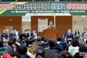 한민일보 서울포커스 유한희 기자 | 대전시의회 조원휘 의장은 14일 제43회 대한배드민턴협회장기 생활체육 전국배드민턴대회에 참석해 참가자들을 격려했다. 이번 대회는 15일까지 이틀간 한밭체육관, 대전대 맥센터, 도솔다목적체육관, 창대체육관 등 4개 경기장에서 열리며, 전국 94개 클럽 2,000여 명이 참가해 남자복식·여자복식·혼합복식 클럽대항전을 펼친다. 예선은 조별 리그전, 본선은 토너먼트 방식으로 진행된다. 조원휘 의장은 축사에서 “전국 각지에서 대전을 찾아주신 2000여 명의 동호인 여러분을 진심으로 환영한다”며 “배드민턴은 남녀노소 누구나 즐길 수 있는 생활체육의 꽃으로, 이번 대회가 시민의 건강 증진은 물론 동호인 간의 깊은 우정을 나누는 화합의 장이 되길 기대한다”고 밝혔다. 이어 “최근 서남부종합스포츠타운 착공을 계기로 대전 체육 인프라가 한 단계 더 도약하게 될 것”이라며 “앞으로 대전이 대한민국 대표 스포츠 도시로 발전하도록 노력하겠다”고 밝혔다.