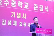 한민일보 서울포커스 전희주 기자 | 의왕시 백운밸리 지역에 신설된 백운호수중학교의 준공식이 24일 백운호수중학교 체육관에서 개최됐다. 의왕백운프로젝트금융투자(주)(의왕백운PFV(주)) 주최로 열린 이날 준공식에는 김성제 의왕시장, 임태희 경기도 교육감, 김학기 의왕시의회 의장과 도·시의원, 의왕백운피에프브이(주) 김양묵 대표이사, 의왕백운밸리에이엠시(주) 이성훈 대표이사 등 주요 내빈과 지역주민 400여 명이 참석해 자리를 빛냈다. 이번 준공식은 학교 설립을 위해 힘써 온 관계자와 지역 주민들이 한 자리에 모여 그동안의 결실을 함께 나누고 축하하는 뜻깊은 행사로 마련됐다. 의왕시 백운밸리 일대는 주거단지 조성과 함께 인구가 지속적으로 증가하고 있는 지역으로, 그간 중학교 부재에 따른 학생들의 원거리 통학 문제가 꾸준히 제기돼 왔다. 이에, 시는 ‘중학교 신설’이라는 지역 숙원사업 해결을 위해 다각적인 방안을 검토해 왔으며, 2023년 11월 의왕시·군포의왕교육지원청·의왕백운피에프브이(주) 간 3자 업무협약을 체결함으로써 학교 설립이 본격 추진됐다. 협약을 통해 시에서는 백운호수 초등학교