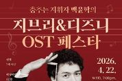 한민일보 서울포커스 곽중희 기자 | 동작구가 오는 22일 오후 7시, 원불교 소태산홀(현충로 75)에서 ‘춤추는 지휘자 백윤학의 지브리&디즈니 OST 페스타’를 개최한다고 밝혔다. 동작문화재단이 주최·주관하는 이번 행사는 4월 ‘문화가 있는 날’을 맞아, 어린이부터 장년층까지 전 세대가 함께 공감하고 즐길 수 있도록 기획됐다. 백윤학은 영남대학교 음악대학 교수이자 ‘서울 페스타 필하모닉 오케스트라’를 이끄는 지휘자로, 음악을 온몸으로 표현하는 독특한 지휘 스타일로 주목받고 있다. 이번 공연에서는 ‘서울 페스타 필하모닉 오케스트라’, 보컬리스트 ‘이희주’와 함께 전 세계적으로 사랑받는 애니메이션 명곡들을 오케스트라의 웅장한 사운드로 재해석해 선보일 예정이다. 관객들은 무대를 통해 ▲마녀배달부 키키 ▲하울의 움직이는 성 ▲벼랑 위의 포뇨 ▲천공의 성 라퓨타 ▲이웃집 토토로 ▲센과 치히로의 행방불명 등 지브리 대표 작품의 주제곡을 아름다운 선율로 감상할 수 있다. 또한 ▲라이온킹 ▲인어공주 ▲인크레더블 ▲주토피아 ▲모아나 ▲알라딘 등 세대를 아우르는 디즈니 명작 OST도 섬세한 연주와 청아한