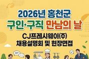 한민일보 서울포커스 진광성 기자 | 홍천군은 지역 주민의 취업 기회를 확대하고 기업의 인력난을 해소하기 위해 오는 4월 17일과 24일 두 차례에 걸쳐 ‘2026년 구인·구직 만남의 날’ 행사를 개최한다. 이번 행사는 구인 기업과 구직자가 직접 만나 채용 설명과 면접을 진행하는 맞춤형 채용 행사로, 홍천읍 행정복지센터 3층 대회의실에서 열린다. 먼저 4월 17일 오후 1시부터 3시까지는 CJ프레시웨이㈜가 참여해 육군종합군수학교 1 수송연대 내 단체 급식 조리원 20명을 모집한다. 선발된 인력은 식재료 전처리, 조리, 세척, 배식 등의 업무를 담당하게 된다. 이어 4월 24일 오후 2시부터 4시까지는 관내 우수 제조기업인 태양 3C㈜의 채용 설명회가 열린다. 제조 설비 증설에 따라 생산 분야에서 근무할 신규 인력 50명을 모집하며, 현장에서는 기업 소개와 함께 1대1 심층 면접도 진행할 예정이다. 이번 행사는 사전 등록 또는 현장 방문을 통해 참여할 수 있다. 구직자는 기업의 상세 근로조건을 듣고 바로 면접에 참여할 수 있으며, 참여를 희망하는 사람은 이력서를 지참해 행사 시간 안에 방문하면 된다.
