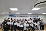 한민일보 서울포커스 유한희 기자 | 대전특수교육원은 12월 29일 본원과 한밭수목원 엑스포시민광장에서 장애학생 육상 종목 특기생과 미래 육상 꿈나무 63명을 대상으로 (재)조웅래나눔재단(이사장 조웅래)으로부터‘체육(육상) 종목 미래인재 장학금 전달식 및 달리기 행사’를 개최하고, 장학증서를 수여했다 이번 장학금 전달식은 (재)조웅래나눔재단의 후원을 받아 장애학생 체육대회 육상 종목에서 남다른 열정과 노력으로 수상한 특기생을 격려하며 성장 잠재력을 길러 미래 체육 인재로 육성하고자 마련했으며, 학생, 학부모, 재단 관계자 등이 참석한 가운데 따뜻한 격려와 축하 속에 진행됐다. 장학금 전달식에서 조웅래 이사장은 장애학생의 꿈과 열정을 응원하며 자신의 한계를 극복하고 뛰어난 기량을 발휘하여 땀방울만큼 값진 결실을 맺는 훌륭한 선수가 되길 기대한다고 강조했다. 나아가 대한민국 체육계를 이끌어갈 미래 인재로 성장하길 기대한다며, 마음을 담아 장학금을 전달했다. 장학생 대상은 초·중·고등학교 특수학급과 특수학교 재학생 중 2025년 전국단위 또는 대전시교육감배 장애학생 체육대회 육상 종목 수상자로 학교장의 추천을 받은 학