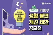 한민일보 서울포커스 김성윤 기자 | 용인특례시 기흥구는 오는 6일부터 5월 4일까지 ‘2026 기흥구 생활불편개선 제안 공모전’을 개최한다. 이번 공모전은 일상에서 시민이 직접 체감하는 불편사항을 발굴하고, 이를 개선할 수 있는 다양한 방안을 모색하고자 마련됐다. 주제는 일상생활에서 체감하는 생활 불편 개선 아이디어다. 시설·환경 등 각종 생활 불편 사항이나 비효율적인 행정이나 규제 등 다양한 분야의 의견을 받는다. 생활 불편에 관심 있는 누구나 참여할 수 있다. 시 누리집 ‘용인소식’의 ‘고시공고’ 또는 기흥구 누리집 ‘참여광장’의 ‘기흥소식’에서 서식을 내려받아 작성하면 된다. 작성한 제안은 방문‧우편(기흥구 관곡로 95 기흥구청 별관 2층 자치행정과 기획감사팀)으로 내면 된다. 전자우편으로도 제출할 수 있다. 부서 검토와 제안공모심사위원회 검토를 거쳐 최종 선정된 제안은 시상금(최대 100만 원)이 지급된다. 또 관련 부서 검토 등을 거쳐 행정에 반영하거나 실효성 있는 정책으로 이어질 수 있도록 추진할 방침이다. 자세한 사항은 시 또는 구 누리