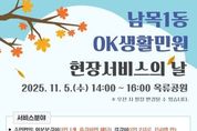 한민일보 서울포커스 기자 | 울산 동구는 오는 11월 5일 오후 2시부터 4시까지 옥류공원에서 ‘남목1동 OK생활민원 현장서비스의 날’ 행사를 개최한다. 이번 행사는 올해 여덟 번째로 열리는 OK생활민원 현장서비스의 날 행사로 주민들의 일상생활 속 불편 해소와 삶의 질 향상을 위한 다양한 분야로 구성했으며, 이번 행사 운영을 위해 자원봉사자, 민간 기술자, 관계 공무원 등 90여 명이 참여한다. 서비스 분야는 총 8개로 주민 편익(칼갈이, 분갈이, 자전거 수리, 안경 및 귀금속 세척), 건강관리(심혈관질환, 비만 예방, 치매 예방), 구정 홍보(탄소중립 생활 실천 홍보), 생활안전(심폐소생술 체험, 소화기 사용 체험), 생활 상담(구민 고충 상담), 동 특화사업(이웃사랑 실천! 복지사각지대 없는 행복 남목1동) 등이 있다. 유료 체험 부스로는 반려식물 키우기 체험이 마련되는데, 1인당 1개만 가능하며 빈 화분을 지참해야 하고 체험비는 현금으로 받는다. 2025년 OK생활민원 현장서비스의 날 전체 일정 및 남목1동 행사 정보는 울산 동구청 홈페이지[알림사항]에서 확인 할 수 있다.