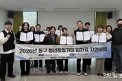 한민일보 서울포커스 임경복 기자 | 대구 동구청은 지난달 31일 동구청년센터에서 ‘청년 창업기업 사무실 임차료 지원사업’ 선정 기업들과 협약을 체결하고 본격적인 지원에 나섰다. 임차료 지원사업은 공모를 통해 관내 7년 이내 초기 창업기업 9개사를 최종 선정했으며, 선정 기업들은 최대 10개월간 50만원 한도 내에서 월 임차료의 50%를 지원받게 된다. 임차료 지원 사업은 아이디어와 기술력을 보유하고도 초기 자본 부족과 고정비 부담으로 어려움을 겪는 청년 창업가들에게 월 임차료의 일정 부분을 지원해 폐업률을 낮추고 성장을 돕는 맞춤형 지원 정책이다. 지난해 처음 시행돼 15개 창업기업을 지원했으며, 청년 창업가들이 절감된 비용을 사업에 재투자해 기업 경쟁력을 강화하기도 했다. 김태운 동구청장 권한대행은 “청년들이 우리 지역 사회에 안착하고 성공적인 창업가로 성장할 수 있도록 꾸준히 돕겠다”고 말했다.