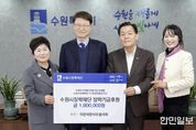 한민일보 서울포커스 진광성 기자 | ㈜농협하나로유통 농협수원유통센터, ㈜더맛푸드, 수원지역건축사회, ㈜에듀케어, 팔색조봉사단, 이만세한식부봉사회 등 6개 기업·단체가 “지역 인재 양성에 사용해 달라”며 수원시장학재단에 총 4100만 원을 기탁했다. 기업·단체 대표들은 12일 수원시청을 방문해 수원시장학재단에 장학금을 전달했다. 전달식에는 이재준 수원시장, 수원시장학재단 박춘근 이사장, 노수용 사무국장 등이 참석했다. ㈜농협하나로유통 농협수원유통센터가 2000만 원, ㈜더맛푸드 1000만 원, 수원지역건축사회 500만 원, ㈜에듀케어 300만 원, 팔색조봉사단 200만 원, 이만세한식부봉사회가 100만 원을 각각 기부했다. ㈜농협하나로유통 농협수원유통센터는 2014년부터 올해까지 매년 2000만 원씩, 총 2억 4000만 원을 수원시장학재단에 기부했고, ㈜더맛푸드는 2년 연속 1000만 원을 기부했다. 민선홍 농협수원유통센터 지사장은 “지역사회와 함께 성장해 온 기업으로서, 지역의 미래를 이끌 인재 양성에 보탬이 되고 싶어 기부에 참여했다”며 “학생들이 꿈을 향해 한 걸음 더 나아가는 데 작은 힘이