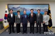 한민일보 서울포커스 임경복 기자 | 오영훈 제주특별자치도지사가 지난 28일 오후 서울 중구 민주평화통일자문회의 사무처에서 강창일 수석부의장과 면담하고, 제주도와 민주평통과의 한 층 더 협력적 관계로 나아가기 위한 업무 협조를 요청했다. 오 지사는 "제주는 노무현 정부 시절인 2005년 법률로 지정된 평화의 섬"이라며 "이러한 상징성을 바탕으로 민주평통과 함께할 수 있는 다양한 평화협력 사업을 함께 기획하고 추진하기를 바란다”고 말했다. 이어 “민주평통의 평화통일 민주시민 교육 프로그램을 평화의 섬 제주에서 개최한다면 런케이션·워케이션 프로그램과 연계해 운영할 수 있다”며 “참여율 제고는 물론 지역경제 활성화에도 실질적으로 기여할 수 있을 것”이라고 덧붙였다. 아울러 오 지사는 양 기관 간 협력이 원활히 이뤄질 수 있도록 공무원 인적 교류 확대도 요청했다. 강창일 수석부의장은 “제주가 추진하는 평화협력 사업이 실질적 성과를 거둘 수 있도록 많은 관심을 갖고 지원하겠다” 고 말했다. 이번 면담은 강창일 수석부의장 취임을 계기로 마련됐으며, 양측은 평화협력 확대 방안을 공유하고, 제주도와 민