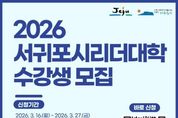 한민일보 서울포커스 김다남 기자 | 서귀포시에서는 시민 자치의식과 리더십 강화를 위한 ‘제4기 서귀포시 리더대학’의 수강생을 3월 16일부터 3월 27일까지 모집한다. 모집대상은 서귀포시민 및 지역생활권자 100명으로, 전공별 (주민자치학과, 양성평등학과)로 각 50명씩 모집한다. 이번 제4기 리더대학 교육과정은 4월 6일 입학식을 시작으로 8월까지 매주 월요일 오후 18시 30분부터 20시 30분까지 총 20개 강의로 운영되며, 전년도 운영 결과를 바탕으로 학사과정의 효율적인 운영을 통해 수강생의 만족도를 높여나갈 계획이다. ‘주민자치학과’는 수강생들의 자치역량을 실질적으로 강화하기 위해 참여·현장형 수업 비중을 대폭 확대하고, 이를 통해 지역사회 내의 자발적·능동적 리더를 양성하는 데 집중한다. 한편,‘양성평등학과’는 양성평등 가치 확산은 물론 지역 리더십·건강관리·인문교양 등 교육과정을 다채롭게 편성하여 시민들이 폭넓은 분야의 강좌를 접할 수 있도록 운영할 예정이다. 수료기준은 전공 및 공통과목 출석률 60% 이상이며, 이를 충족한 수료생에게는 제주도민대학과 연계한 명예학사 학점