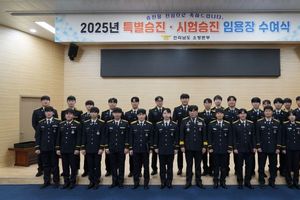 한민일보 서울포커스 박용남 기자 | 해남소방서(서장 박춘천)는 5일 오후 2시 서장실에서 소방공무원 승진자에 대한 임용장 수여식을 실시했다고 밝혔다. 이날 수여식은 소방위으로 승진한 소방장 진승완, 주영민, 소방장로 승진한 소방교 황인덕, 김동우, 최한빈, 소방교로 승진한 소방사 이명우, 박재용, 최수형 등 8명으로 승진 대상자에게 임용장을 수여하고 축하와 격려를 하고자 마련됐다. 임용식에 참석한 합격자들은 "그동안 응원해준 동료들의 도움 덕분에 좋은 결과를 얻을 수 있었다"며 "더 높은 책임감을 가지고 군민안전을 위해 최선을 다하겠다"고 다짐했다. 승진자들은 화재·구조·구급 등 각자의 위치에서 책임감과 사명감을 갖고 군민의 생명과 재산을 지키는 안전지킴이로서 역할을 수행하게 된다. 박춘천 소방서장은 “승진은 책임이 커지고 역할이 확대되는 출발점”이라며 “군민의 생명과 안전을 지킨다는 사명감을 바탕으로 더욱 적극적이고 솔선수범하는 자세로 임해 달라”고 당부했다.