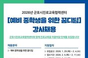 한민일보 서울포커스 임경복 기자 | (재)군포시청소년재단 군포시진로교육협력센터는 관내 예비중학생의 학교 적응과 진로 기초 역량 강화를 위해 '2026년 군포시진로교육협력센터 예비중학생을 위한 꿈디딤' 프로그램에 참여할 강사를 채용한다고 밝혔다. 이번 강사 채용은 초등학교에서 중학교로의 학년 전환기를 앞둔 예비중학생을 대상으로, 중학교 생활 전반에 대한 이해를 높이고 진로 탐색과 자기 이해를 돕는 맞춤형 프로그램을 운영하기 위한 것으로, 총 3명 내외의 전문 강사를 선발할 예정이다. 채용 공고는 2026년 1월 29일부터 2월 4일까지 진행되며, 지원서 접수는 2월 5일부터 2월 11일까지이다. 접수는 이메일을 통해서만 가능하다. 선발된 강사는 예비중학생을 대상으로 중학교 생활 적응, 학습 및 진로 정보 제공, 학습 동기 강화 등을 주제로 한 ‘꿈디딤’ 프로그램을 운영하게 된다. 군포시진로교육협력센터 이혜진 센터장은 “예비중학생 시기는 중학교 생활에 대한 불안과 기대가 공존하는 시기”라며 “아이들이 새로운 환경에 안정적으로 적응하고, 스스로의 진로를 탐색할 수 있도록 돕는 프로그램이 될 수 있도록 전