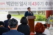 한민일보 서울포커스 박용남 기자 | 이정선 광주시교육감이 12일 국립5·18민주묘지 ‘역사의 문’ 앞에서 열린 ‘민주화의 새벽기관차 박관현 열사 제43주기 추모식’에 참석했다. 이날 추모식에는 이정선 교육감을 비롯해, 강기정 광주광역시장, 윤목현 5·18기념재단 이사장, 이개호 영광군 국회의원, 유족 및 시민사회단체 관계자 등이 참여해 열사의 숭고한 뜻을 기렸다. 이정선 교육감은 “박관현 열사의 숭고한 정신을 잊지 않고 기억하는 길은 5·18 정신을 미래 세대에 계승하고 발전시키는 교육이다”며, “오월 정신을 전국으로, 세계로 알리고 확산하여 민주주의와 인권, 평화의 가치를 교육 현장에서 실천해 나가겠다”고 밝혔다.