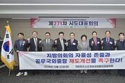 한민일보 서울포커스 임경복 기자 | 대한민국시군자치구의회 의장협의회 제271차 시도대표회의가 23일 서울특별시 서울올림픽파크텔에서 열렸다. 이날 시도대표회의에서는 '공무원 여비 규정 현실화 및 국외공무출장 위탁수수료 제도 개선 촉구'건의안 및 의장협의회의 2026년 당초예산안 및 2026년도 시·도전출금 사업계획(안) 승인의 건 등을 심의했다. 특히 최익순 사무총장(강릉시의장)은 행정안전부의 일방적인 지방의회 공무국외출장 제한 조치에 깊은 유감을 표하며, 지방의회의 자율성 존중과 공무국외출장 제도개선을 촉구하는 성명서를 낭독했다. 최근 행정안전부는 ‘지방의원 임기만료 전 외유성 공무국외출장 방지 대책’을 발표하고 ‘지방의회의원 공무국외출장 규칙 표준’개정안을 마련한다고 밝혔으나, 의장협의회는 당사자인 시군 자치구의회의 의견수렴 절차 없이 일방적으로 발표됐으며, 법률적 타당성의 문제와 지방의회의 자율적 조직권을 침해하는 문제가 있다고 판단했다. 이에 최익순 사무총장은 ▲법률적 근거가 불명확한 지방 교부세 패널티 방안과 위원회 구성 강제 조항의 철회, ▲국외여비 기준 개선과 지방의회 국제교류 및 정책연