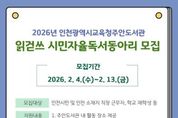 한민일보 서울포커스 유창렬 기자 | 인천광역시교육청주안도서관은 지역주민의 자발적 독서문화 확산을 위하여 2월 4일부터‘2026년 읽걷쓰 시민자율독서동아리’를 모집한다. 이번 모집은 시민이 주체가 되어 독서, 토론, 글쓰기 등 다양한 활동을 펼치는 동아리를 발굴·육성하기 위해 마련했으며, 선정된 동아리에는 활동을 위한 도서와 공간, 운영 물품을 지원하는 등 다양한 혜택을 제공할 예정이다. 모집에 대한 자세한 사항은 주안도서관 누리집을 확인하거나 독서문화과로 문의하면 된다.