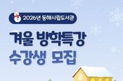 한민일보 서울포커스 임경복 기자 | 동해시는 2026년 겨울방학을 맞아 관내 초등학생을 대상으로 동해시립도서관에서 겨울방학 특강 프로그램을 운영한다고 밝혔다. 이번 특강은 1월 19일부터 1월 23일까지 발한도서관, 북삼도서관, 꿈빛마루도서관에서 운영되며 북트레일러 크리에이터, 뚝딱! 과학 탐험대, 겨울나라 도자기 공방 등 총 6개 과정, 66명을 모집할 계획이다. 접수는 1월 6일 오전 10시부터 동해시립도서관 홈페이지를 통해 선착순으로 진행되며, 신청은 홈페이지 내 독서문화 → 프로그램 신청 메뉴를 통해 가능하다. 김은서 평생학습과장은 “이번 겨울방학특강을 통해 지역 어린이·청소년들이 다양한 창작·독서 체험을 경험함으로써 창의력과 사회성 향상에 도움이 될 것”이라고 말했다. 재료비를 제외한 수강료는 무료이며, 세부 내용은 동해시립도서관 홈페이지에서 확인할 수 있다. 기타 문의사항은 발한도서관, 북삼도서관, 꿈빛마루도서관으로 문의하면 된다.