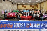 한민일보 서울포커스 박용남 기자 | 광주지역 고등학생들이 교육정책을 허심탄회하게 제안하는 장이 열렸다. 광주시교육청은 25일 김대중컨벤션센터 중소회의실에서 23개 팀 100여 명의 고등학생이 참여한 가운데 ‘2025 광주 학생 100인 정책제안 한마당’을 개최했다. ‘학생 정책제안 한마당’은 학생들이 학교 및 지역의 문제를 발굴하고, 문제 해결을 위한 정책을 제안하며 교육 정책의 주체로 성장할 수 있도록 지원하기 위해 마련됐다. 이날 행사는 학생들의 정책 제안서 중 1차 서류 심사를 통과한 우수 8개 팀이 정책을 발표하고, 이어 23개 팀의 정책에 대해 질의응답하는 ‘정책 마켓’ 등으로 진행됐다. 8개 우수 팀은 ▲온라인 돌봄 신청 플랫폼 ▲청소년 일자리 창업 지원 및 건강한 노동환경 조성 ▲AI로 접근하는 학생 멘탈 케어 ▲폐의약품의 올바른 수거를 위한 정책 ▲AI 챗봇 심리지원 플랫폼 '다온' 도입 및 상용화 ▲스마트 태양광 쓰레기통 설치 ▲사회적 약자를 위한 찾아가는 안전봉사단 운영 ▲불필요한 학교 에너지 감축을 위한 정책 제안 등 다양한 분야의 정책을 제시했다. 또 ‘정책 마켓’