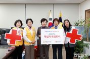 한민일보 서울포커스 국용호 기자 | 영등포구의회는 19일 의장실에서 대한적십자사 서울특별시지사에 2026년도 적십자 특별회비를 전달했다. 이번 전달식에는 정선희 의장을 비롯해 정활란 대한적십자사 서울특별시지사 서부봉사관장, 최금옥 대한적십자봉사회 영등포구협의회 회장 등 관계자 5명이 참석한 가운데 특별회비 전달에 이어 차담회를 갖고 지역사회 나눔 활동에 대한 의견을 나눴다. 영등포구의회는 복지사각지대에 놓인 취약계층 지원과 긴급재난 구호, 지역보건 증진 등 대한적십자사가 펼치는 인도주의 활동에 동참하고자 2021년부터 매년 적십자 특별회비를 기탁해 왔다. 정선희 의장은 "재난구호와 복지사각지대 해소를 위해 묵묵히 헌신하며 이웃사랑의 가치를 실천하고 있는 대한적십자사 관계자 여러분께 깊은 감사와 존경의 마음을 전한다"고 밝혔다. 이어 "구의회가 전달하는 특별회비가 도움의 손길이 필요한 곳에 신속히 전달되어 어려움을 겪는 우리 이웃들에게 희망의 빛이 되기를 진심으로 바란다"고 덧붙였다.