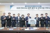 한민일보 서울포커스 유현민 기자 | 시흥시인재양성재단은 지난 3월 19일 시청 다슬방에서 한국공학대학교와 지역인재 장학사업 추진을 위한 업무협약을 체결하고, 산학협력단 내 입주기업들이 조성한 장학기금 총 2,510만 원의 기탁식을 진행했다. 이날 행사에는 (주)릴리아 솔루션, 피티에스와이에스, 메타리버테크놀러지, 엠씨테크닉스, 태성 등 5개 입주기업 대표를 비롯해 시 관계자와 한국공학대학교 총장 등 10여 명이 참석해 지역 인재 양성을 위한 협력 의지를 다졌다. 이번 협약은 한국공학대학교 제2캠퍼스(리서치파크) 산학협력관 내에 공정혁신 시뮬레이션센터와 협력하는 입주기업들이 자발적으로 조성한 재원을 지역사회에 환원하고, 이를 관내 초중고 학생 대상 장학사업으로 연계하기 위해 마련됐다. 기탁금은 시흥시 미래인재 양성을 위한 장학 재원으로 활용되며, 재단은 기탁 취지에 맞게 재원을 투명하고 공정하게 관리ㆍ운영할 계획이다. 양 기관은 ▲지역인재 발굴 및 장학지원 확대 ▲산학협력 성과의 지역사회 환원 체계 구축 ▲대학·기업·지역 간 지속 가능한 상생협력 모델 확산 등을 위해 협력하기로 했다. 임병택 시흥시장