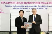 한민일보 서울포커스 김성윤 기자 | 이상일 용인특례시장은 19일 오후 기흥구 백남준아트센터에서 열린 국제기획전 ‘불연속의 접점들’개막식에 참석했다. 이 시장은 개막식에 앞서 다미르 쿠센 주한 크로아티아 대사와 30여분 간 환담을 하며 용인특례시와 크로아티아의 도시 간 교류 협력 문제에 대해 의견을 교환했다. 이번 전시는 백남준아트센터와 크로아티아의 수도 자그레브에 위치한 ‘자그레브 현대미술관’이 공동 기획한 국제 전시로, 고(故) 백남준 작가의 예술 정신과 맥을 같이하는 크로아티아 미디어아트 작품들을 소개하는 등 양국 간 문화예술 교류를 강화하기 위해 마련됐다. 전시는 19일부터 6월 14일까지 백남준아트센터에서 진행되며, 크로아티아 작가 15명이 참여해 영상, 설치, 조각 등 다양한 미디어아트 작품 26점을 선보인다. 개막식에는 이상일 시장과 다미르 쿠센 주한 크로아티아 대사, 베스나 메슈트리치 자그레브 현대미술관장, 허남진 경기문화재단 이사장과 유정주 대표이사, 도의원, 문화예술계 인사, 시민 등 250여 명이 참석했다. 이상일 시장은 “백남준아트센터를 찾은 모든 분들의 용인시 방문