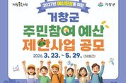 한민일보 서울포커스 김서윤 기자 | 거창군은 3월 23일부터 5월 29일까지 예산 편성 과정에 주민의 의견을 실질적으로 반영하고 지역에 필요한 사업을 직접 제안할 수 있는 ‘2027년 주민참여예산 제안사업 공모’를 추진한다. 올해는 전년 대비 1억 원이 증액된 총 30억 원 규모로 운영되며, 내실 있는 주민 의견을 더 효과적으로 반영하고자 일반공모형(4개), 지역회의형(1개)으로 공모유형을 구분해 시행한다. 일반공모형(21억 원)은 △군정 아이디어 제안(6억 원) △체류관광 활력증대(5억 원) △복지안전 생활강화(5억 원) △미래세대 발상실현(5억 원) 등 군민 생활과 밀접한 사업을 집중 발굴하고, 지역회의형(9억 원)은 읍면 주민자치회를 대상으로 지역 특성에 맞는 지역맞춤형 사업을 발굴할 예정이다. 특히, 올해는 주민 참여를 독려하고 우수 제안을 발굴하기 위해 인센티브 제도를 확대 운영한다. 지난해 관련 조례 개정을 통해 법적 근거를 마련했으며, 이에 따라 우수제안자로 선정되거나 공모 참여자 중 추첨을 통해 소정의 거창사랑상품권을 지급할 계획이다. 공모 신청은 거창 군민이면 누구