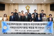 한민일보 서울포커스 박용남 기자 | 광산구의회가 21일 제301회 정례회 제1차 본회의에서 ‘마을공동체 활성화 기본법, 주민자치회 법제화, 사회연대경제기본법 제정 촉구 건의안’을 채택했다. 광산구의회는 조영임 의원(더불어민주당, 첨단1·2동)이 대표 발의한 건의안을 통해 “우리 사회는 물질적 풍요 속에서 공동체 해체, 사회적 고립이 심화되고 있다”며 “지역 문제와 불평등을 해결하기 위해서는 행정 중심의 개발 논리가 아닌 주민 스스로 공공의 가치를 만들어가는 풀뿌리 자치의 회복이 필요하다”고 강조했다. 이어 “마을은 민주주의의 출발점이자 주민이 일상에서 협력과 연대를 실천하는 삶의 학교지만, 마을공동체의 현행 제도는 사업 중심으로 분절되어 있고 법적 근거가 미비하다”고 지적했다. 또한 “주민자치회 역시 생활자치의 핵심으로, 주민이 직접 마을계획 수립과 예산 편성에 참여하는 제도적 권한이 보장돼야 한다”며 “주민자치회를 통해 지방분권의 완성과 생활민주주의를 실현할 수 있도록 법제화되어야 한다”고 설명했다. 아울러 “사회연대경제는 협동과 상생을 통한 사람 중심의 경제를 구현하는 새로운 대안”이라며 “사