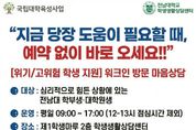 한민일보 서울포커스 박정민 기자 | 전남대학교가 심리적 위기 상황에 놓인 학생을 ‘그 순간’ 바로 지원하는 즉시 개입형 상담체계를 구축했다. 예약과 대기를 없애고 방문 즉시 전문가와 연결하는 ‘워크인(Walk-in) 심리상담’을 도입해, 위기 대응의 골든타임을 확보하고 고위기·고위험군 학생 보호를 한층 강화한다. 1일 전남대에 따르면, 학생생활상담센터는 심리적 위기를 경험하는 학생들을 신속하게 지원하기 위해 ‘워크인(Walk-in) 심리상담’ 제도를 도입하고 본격 운영에 들어갔다. ‘워크인 심리상담’은 별도의 사전 예약 없이 센터를 방문하면 즉시 상담 전문가와 연결되는 밀착형 지원 시스템이다. 특히 심리적 긴급 상황이나 고위험군에 속한 학생들이 초기 개입 시점을 놓치지 않고 전문적인 상담을 받을 수 있도록 설계됐다. 이번 제도는 학생들이 도움을 요청하는 ‘바로 그 순간’에 개입하는 것을 핵심으로, 기존 예약 중심 상담 체계의 한계를 보완하고 보다 신속하고 실효성 있는 위기 대응을 가능하게 할 것으로 기대된다. 정주리 학생생활상담센터장은 “학생들이 마음의 문을 열고 도움을