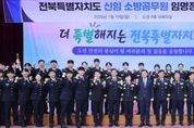 한민일보 서울포커스 최성훈 기자 | 전북특별자치도는 19일 도청 4층 대회의실에서 2026년 신임 소방공무원 임명장 수여식을 열고, 도민의 생명과 안전을 지킬 신임 소방공무원 45명을 공식 임명했다. 이번에 임용된 신임 소방공무원 45명은 전원 구급대원으로, 증가하는 응급출동 수요와 고도화되는 구급서비스 환경에 대응하기 위한 현장 중심 전문인력으로 배치된다. 신임 구급대원들은 임명 이후 도내 각 소방관서에 배치돼 응급환자 이송, 현장 응급처치 같은 도민 생명 보호 임무를 최일선에서 수행한다. 이날 행사에는 신임 소방공무원 45명과 가족·친지를 비롯해 전북특별자치도지사, 전북특별자치도소방본부장 등 200여 명이 참석했다. 가족과 친지들이 함께한 가운데 진행된 수여식은 신임 구급대원들의 공직 첫 출발을 축하하는 자리로 마련돼 따뜻하고 편안한 분위기 속에서 진행됐다. 신임 구급대원들은 제111기 신규임용자 과정을 통해 중앙소방학교(충남 천안)에서 총 24주 동안 체계적인 교육과 훈련을 이수했다. 교육 과정에서는 구급 분야 중심의 응급처치 훈련을 비롯해 실화재·재난 대응 훈련, 행정실무 교육이
