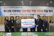 한민일보 서울포커스 진광성 기자 | 구로구가 이달 19일 구청 르네상스홀에서 ‘제12회 걸으며 기부하는 건강계단 적립금 기부 행사’를 개최했다. ‘걸으며 기부하는 건강계단’은 구청 내 설치된 건강계단 이용자 수에 따라 고대구로병원이 1인당 20원의 기부금을 적립하는 사업이다. 올해 12월을 기준으로 47만 명이 참여했으며, 연말까지 50만 명 달성을 목표로 하고 있다. 이날 행사에는 장인홍 구로구청장을 비롯해 민병욱 고대구로병원 병원장, 이경애 구로희망복지재단 사무국장 등이 참석해 고대구로병원에서 마련한 기부금 1,000만 원을 구로희망복지재단에 전달하고 감사의 인사를 전했다. 기부금은 긴급 지원이 필요하거나 공적 지원을 받지 못하는 복지 사각지대에 놓여 있는 어려운 이웃들을 위해 사용될 예정이다. 장인홍 구로구청장은 “건강계단에 꾸준히 참여해주신 구민 여러분과 기부를 통해 뜻을 함께해주신 고대구로병원에 감사드린다”며 “앞으로도 어려운 이웃을 돕기 위한 따뜻한 나눔 활동을 지속적으로 운영하겠다”고 말했다.