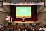 한민일보 서울포커스 박정민 기자 | 박강수 마포구청장은 12월 14일 마포구청에서 열린 ‘2026학년도 정시 전략 설명회 및 1:1 진학 컨설팅’ 현장을 찾아 수험생과 학부모를 격려했다. 이번 행사는 마포구와 마포진로직업체험지원센터가 공동으로 주최·주관해 관내 수험생과 학부모 등 400명을 대상으로 정시 전략 설명회와 1:1 진학컨설팅을 함께 진행했다. 이날 박강수 마포구청장은 정시 전략 설명회에 앞서 마포구청 12층 중강당에서 운영 중인 1:1 진학 컨설팅 부스를 라운딩하며 상담 진행 상황을 살폈다. 1:1 진학 컨설팅은 전문교사가 사전 신청자를 대상으로 1인당 40분씩 진행하며, 학생의 성적과 희망 대학·전공, 변화된 전형 요소 등을 종합적으로 분석해 맞춤형 진학 전략을 제시하는 등 밀도 있는 상담으로 운영됐다. 이어 오후 1시 5분부터 2층 대강당에서 열린 정시 전략 설명회에서 박 구청장은 인사말을 통해 수험생과 예비 수험생, 학부모들에게 응원의 메시지를 전했다. 이후 진행된 정시 전략 설명회에서는 종로학원 임성호 대표이사가 강연자로 나서 2026학년도 수능 결과와 대학별 전형 변