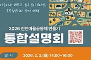 한민일보 서울포커스 유창렬 기자 | 인천광역시는 2월 2일 제물포스마트타운 2층 대강의실에서‘2026년 인천광역시 마을공동체 만들기 통합설명회’를 개최한다고 밝혔다. 이번 설명회는 마을공동체 관계자와 활동가, 일반 시민 등 약 150명이 참석할 예정으로, 인천시와 군·구가 추진하는 마을공동체 공모사업과 주요 지원 정책을 한자리에서 소개해 시민들의 사업 참여를 확대하기 위해 마련됐다. 인천시는 올해 제3기 마을공동체 만들기 기본계획(2026~2030)을 수립하고, ‘시민과 함께, 자치와 연대로 성장하는 인천 마을공동체’를 비전으로 설정했다. 이는 주민이 스스로 의제를 발굴하고 실행하는 자치와 공동체 간 상생과 연대를 통해 마을공동체가 단발성 사업을 넘어 시민의 삶과 도시문화 속에 지속적으로 자리 잡도록 하겠다는 취지를 담고 있다. 설명회 1부에서는 인천시가 직접 기획해 추진하는 ▲네트워크 활성화 ▲마을 홍보 ▲세대 공감 ▲마을길 잇기 ▲기타 주민제안 등 5개 유형의 기획 공모사업을 소개한다. 이와 함께 마을지원활동가 운영, 교육, 공론장, 성과공유회 등 마을공동체의 성장을 지원하는 주요