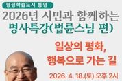 한민일보 서울포커스 김서윤 기자 | 통영시는 오는 4월 18일 오후 2시, 통영시민문화회관 대극장에서 '평생학습도시 통영, 2026년 시민과 함께하는 명사초청 강연'의 두 번째 순서로 법륜스님을 초청해 명사 특강을 개최한다. 평화재단 이사장이자 정토회 지도법사인 법륜스님은 즉문즉설 형식의 강연을 통해 사람들의 다양한 고민에 대해 명쾌한 해법을 제시하며 큰 호응을 얻고 있다. 이번 강연은 ‘일상의 평화, 행복으로 가는 길’을 주제로 진행되며, 특히 법륜 스님 특유의 ‘즉문즉설(卽問卽說)’이 예정돼 있어 기대를 모으고 있다. 정해진 주제 없이 현장에서 시민들이 직접 작성한 고민과 번뇌를 ‘즉문함’에 넣으면, 스님이 이를 즉석에서 선택해 명쾌한 해답과 위로를 건네는 소통형 강연으로 꾸며질 예정이다. 특히 삶의 무게와 고통 속에서 길을 찾는 시민들에게 스님의 지혜로운 통찰이 담긴 답변이 실시간으로 전해지며 깊은 공감과 치유의 장이 될 것으로 기대된다. 참석을 희망하는 시민은 사전 신청 없이 당일 현장 방문을 통해 자유롭게 참여할 수 있다. 시 관계자는 “이번 강연이 시민들에게