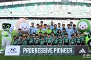 한민일보 서울포커스 최성훈 기자 | 정성주 김제시장이 전북현대와 손잡고 ‘김제파트너데이’를 통해 지평선축제와 김제쌀을 홍보했다. 22일 김제시에 따르면 지난 20일 오후 4시 30분 전주월드컵경기장에서 김천상무와 전북현대 30라운드 경기에 참가해 ‘김제파트너데이’를 진행했다. 시는 이날 홍보부스를 마련해 오는 10월 8일부터 12일까지 진행되는 ‘김제지평선축제’를 알리고 이와 함께 ‘김제지평선쌀’, ‘쌀 마스크팩’, ‘지평선축제 체험권’ 등을 팬들에게 선물했다. 홍보부스에서 김제지평선축제 SNS(유튜브, 인스타그램) 구독 이벤트와 김제시 SNS 구독이벤트, 고향사랑기부로 이날 경기를 찾은 2만여 관중들에게 호응을 얻었다. 특히, 이날 시는 20kg 쌀 20포를 전북현대 선수단에 기부했으며 전북현대는 기증받은 쌀 20포를 김제 지역 노인의료복지시설(4곳)에 다시 기증했다. 정 시장은 “우승을 향해 달려가는 전북현대가 김제시와 함께 김제파트너데이를 진행하게돼 김제에서 열리는 김제지평선축제 역시 전북도민과 전국민에게 사랑을 받는 축제가 될 것으로 기대된다”면서 “특히, 김제지평선축제가 추석시