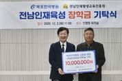 한민일보 서울포커스 박정민 기자 | 전라남도는 고광일 목포한국병원 원장은 2일 전남인재평생교육진흥원에 전남인재육성 장학금 1천만 원을 기탁했다고 밝혔다. 전남인재평생교육진흥원 회의실에서 열린 기탁식에는 고광일 원장, 범희승 전남인재평생교육진흥원장 등이 참석했다. 1988년 개설된 목포한국병원은 20개 진료과와 600병상을 갖춘 전남 서부권역 대표 종합병원이다. 2025년 보건복지부 ‘포괄 2차 종합병원 지원사업’에 선정되며 지역 필수의료를 책임지는 핵심 의료기관으로 자리매김했다. 특히 지난 2021년부터 지역 인재 육성을 위해 2천만 원의 장학금을 기탁했으며, 병원 소속 봉사단은 지역 사회복지기관에 생필품 기부활동을 추진하는 등 지역민을 위한 따뜻한 나눔을 이어오고 있다. 범희승 원장은 “연말을 맞아 소중한 장학금을 기탁한 고광일 병원장께 감사드린다”며 “장학금은 전남의 인재가 꿈을 마음껏 펼치면서 성장하도록 뒷받침하는데 소중히 쓰겠다”고 말했다. 이번 기탁금은 전남인재육성장학금 재원으로 사용되며, 재능이 우수하지만 생활이 어려운 초·중·고교생과 대학생들을 위해 쓰이게 된다