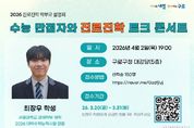 한민일보 서울포커스 진광성 기자 | 구로구가 오는 4월 2일 구로구청 대강당에서 ‘2026 수능 만점자와 진로진학 토크콘서트’를 개최한다. 이번 토크콘서트는 대학수학능력시험 만점자의 실제 경험을 바탕으로 효과적인 학습 방법과 진로·진학 전략을 공유하고, 청소년과 학부모의 궁금증을 해소하기 위해 마련됐다. 강연자로는 2026학년도 대학수학능력시험 만점자인 최장우 학생(서울대학교 경제학부 재학)이 나선다. 최장우 학생은 ‘유 퀴즈 온 더 블록’, ‘뉴스투데이’, ‘김현정의 뉴스쇼’ 등 다양한 방송과 유튜브 채널에 출연해 주목받았다. 이날 특강은 관내 중‧고등학생 및 학부모 150명을 대상으로 4월 2일 오후 7시부터 8시 30분까지 진행된다. 전문 사회자의 진행으로 사전 접수된 질문 중 5가지를 선정해 답변하고, 청소년과 학부모에게 전하고 싶은 메시지도 함께 전달할 예정이다. 이어 현장 참여자들과의 즉석 질의응답을 통해 보다 구체적이고 실질적인 상담을 진행하고, 행사 종료 후에는 만족도 조사와 기념사진 촬영으로 마무리한다. 신청은 3월 31일까지 홍보 안내문의 큐알(QR)을 통해 선착순으로