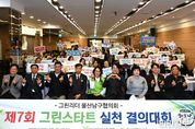 한민일보 서울포커스 기자 | 그린리더 울산남구협의회(회장 전정표)는 4일 문수컨벤션에서 회원 180여 명이 참석한 가운데 제7회 그린스타트 실천 결의대회를 개최했다. ‘그린스타트운동’은 저탄소 기후변화 대응의 국가적 비전인 ‘녹색성장을 통한 저탄소사회 구현’을 위해 일상생활에서 온실가스 줄이기를 실천하자는 범국민 실천운동이다. 이번 행사는 사랑의 이불 나눔 행사에 이어서 유공자 표창, 녹색생활 실천다짐 퍼포먼스 순으로 진행됐다. 남구협의회는 저탄소 녹색생활을 전파하고 비산업부문 온실가스 배출량 감축과 탄소포인트제 가입 독려 활동 등을 펼치고 있으며 특히 ‘재활용품 교환사업’으로 발생한 수익금으로 저소득층 107세대에게 400만 원 상당의 따뜻한 겨울을 보낼 수 있는 동계 이불 전달행사도 4년째 이어오고 있다. 전정표 남구협의회장은 “이번 그린스타트 실천 결의대회를 통해 회원들이 기후변화 대응 리더로서 녹색생활 실천 의지를 되살리는 계기가 될 것”이라며 “주민들이 공감할 수 있는 다양한 활동들을 지속적으로 펼쳐 온실가스 감축에 선도적인 역할을 다하겠다”고 말했다. 서동욱 남구청장은 “