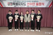 한민일보 서울포커스 최성훈 기자 | 강원특별자치도(도지사 김진태)는 1월 19일(월) 오후 2시 30분, 도청 신관 소회의실에서 ‘2026 밀라노·코르티나담페초 동계올림픽’에 출전하는 도 선수단의 선전을 기원하는 출정식을 개최했다. 이번 밀라노 코르티나담페초 동계올림픽은 오는 2월 6일부터 22일까지 개최되며 대한민국은 6개 종목 약 70여 명의 선수단이 출전할 계획이다. 이 가운데 도 소속 선수단은 약 20여 명으로 예상되며 이는 대한민국 대표 선수단의 4분의 1에 해당하는 규모다. 이날 출정식에는 김진태 도지사, 양희구 도 체육회장, 권복희 도 빙생연맹회장, 전건탁 도 봅슬레이연맹회장, 황대헌 쇼트트랙 선수 등을 비롯해 스피드 스케이팅, 스켈레톤, 봅슬레이 선수단과 지도자가 참석했다. 선수 대표로 나선 황대헌 선수는 “오늘 이 자리는 각오를 다지는 출발선”이라며, “도청 선수단은 개인이 아닌 팀으로 기록이 아닌 책임으로 이 자리에 섰고 훈련장에서 쌓아온 시간과 노력을 경기장에서 결과로 보여드리겠다”고 각오를 밝혔다. 김진태 도지사는 “이렇게 도 차원에서 출정식을 여는 것은 전국에서도