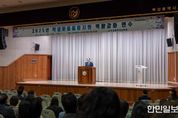 한민일보 서울포커스 임경복 기자 | 윤건영 충청북도교육감이 2일 오전, 화합관에서 12월 월례조회를 개최했다. 먼저, 한 해의 마지막과 새로운 시작이 공존하는 12월은 2026년에도 자기 성찰과 굳은 의지로 새로운 변화를 준비하자는 취지에서 해현경장(解弦更張)으로 12월 사자성어를 정했다고 밝혔다. 해현경장은 '더 나은 소리를 위해 거문고의 줄을 바꾸어 매다'라는 뜻으로 새해에 더 멀리, 더 높이 도약하는 충북교육이 되기 위해서는 지금이 바로 신발끈을 단단히 고쳐 묶어야 할 때라고 강조했다. 또한, 해마다 더 나은 충북교육을 체감할 수 있도록 그동안의 성과를 돌아보고 개선점을 살피며 함께 준비해 주길 부탁했다. 이어, 학사 운영이 마무리되어 가는 학년말에 학생들의 배움과 성장이 유기적으로 지속되어 교육과정 운영의 집중도를 유지해야한다고 말했다. 학년말은 전환기 학생들에게 새출발을 준비하는 소중한 골든타임으로 맞춤형 컨설팅을 통해 배움의 연속성을 보장하는 다양한 전환기 교육프로그램이 운영되도록 각 부서와 교육지원청은 현장의 특수성 등을 고려해 세심한 지원을 주문했다. 이어,