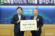 한민일보 서울포커스 박용남 기자 | 전북특별자치도는 2일 도청에서 대한적십자사 전북지사에 2026년도 적십자 특별회비 500만 원을 전달했다. 이번 전달식은 2026년도 적십자 모금 개시를 알리는 제1호 특별회비 전달식으로 진행됐으며, 김관영 도지사가 직접 특별회비를 전했다. 전달식에는 대한적십자사 전북지사 김홍식 회장과 임직원이 참석해 지역사회 나눔 실천의 의미를 함께했다. 전북도는 매년 적십자 특별회비를 기탁하며 도민 참여 확산과 기부문화 정착에 앞장서고 있다. 적십자 특별회비는 지역 취약계층 긴급지원, 재난 대비 및 구조 활동, 헌혈 활성화, 안전교육 등 다양한 인도주의 사업에 활용된다. 특히 기후변화로 인한 자연재해 증가와 복지 사각지대 확대 속에서 적십자 활동의 중요성이 더욱 강조되고 있다. 내년도 대한적십자사 전북지사의 적십자회비 모금 목표는 12억 4천만 원이며, 2026년 1월 31일까지 집중 모금기간을 운영하고 있다. 김관영 도지사는 “적십자 특별회비는 어려운 이웃을 돕고 재난 상황에서 생명을 지키는 데 중요한 역할을 한다”며 “전북도는 앞으로도 도민들과 함께 지역 공동